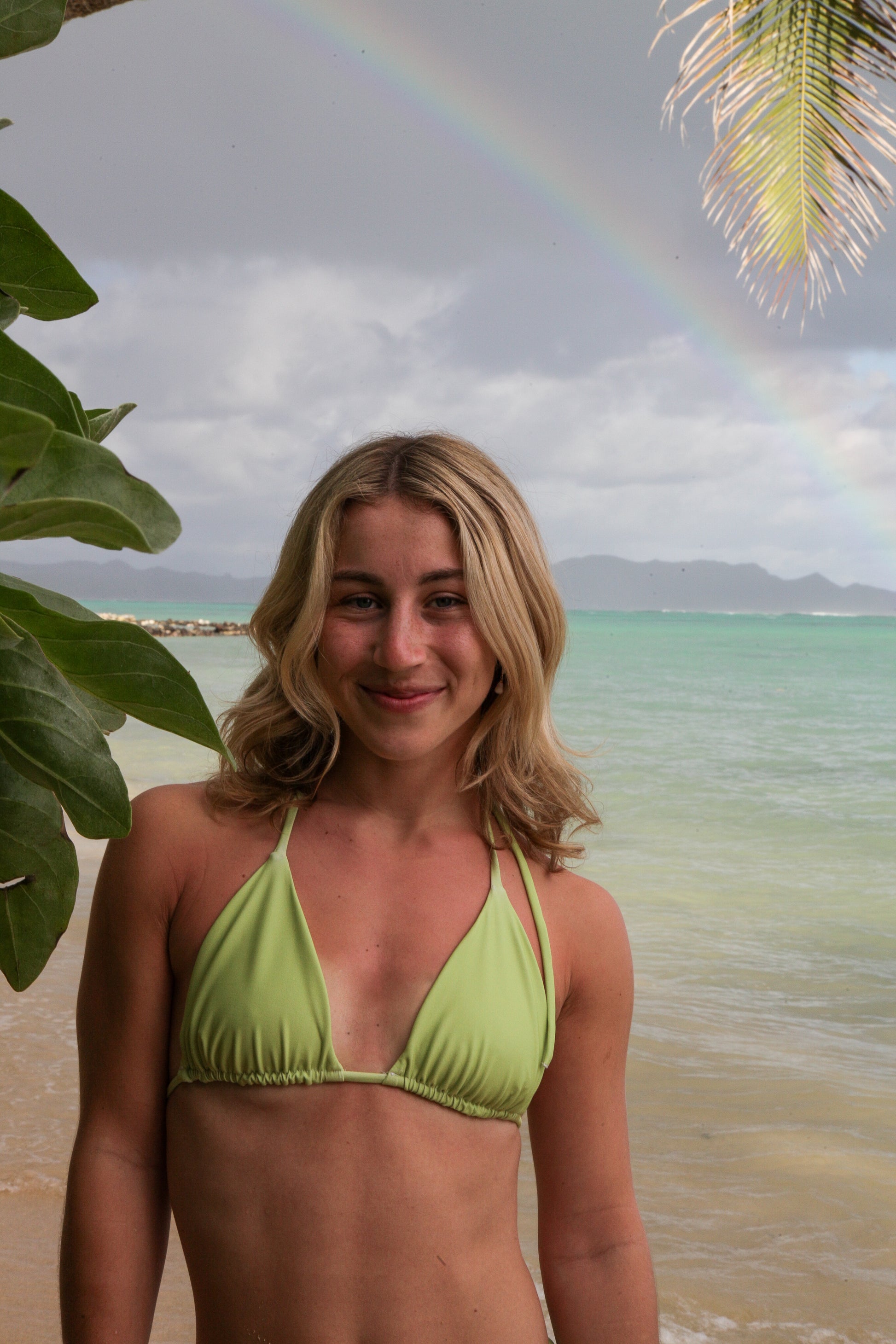 Model: Jayne is 5’5 and is wearing a size S in the Palm Kini Top